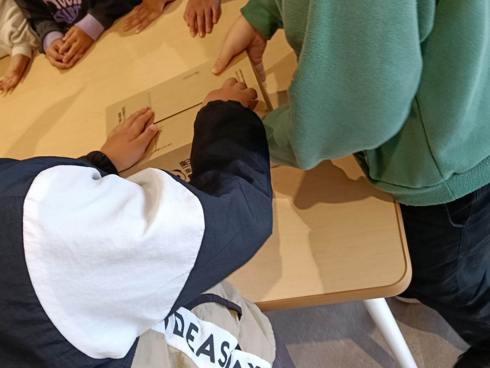 (梱包作業を体験する児童たち)